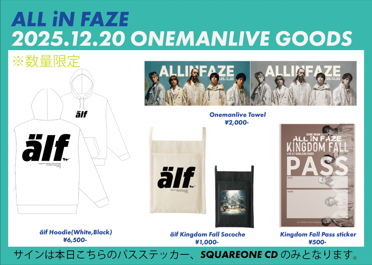 12月20日 (土)@原宿RUIDO ALL iN FAZE ONE MAN LIVEのご案内